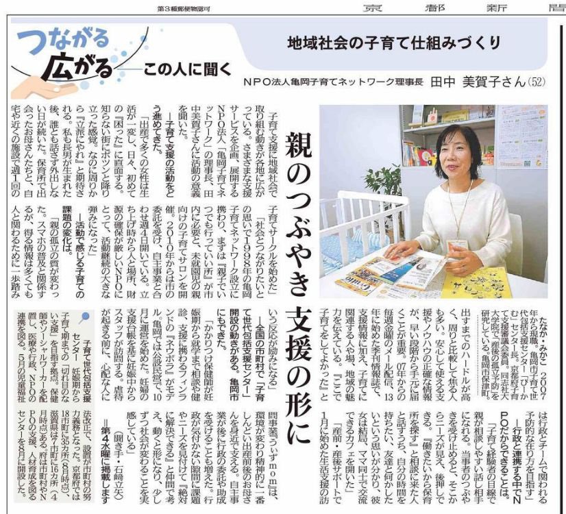 NPO法人亀岡子育てネットワーク 理事長就任